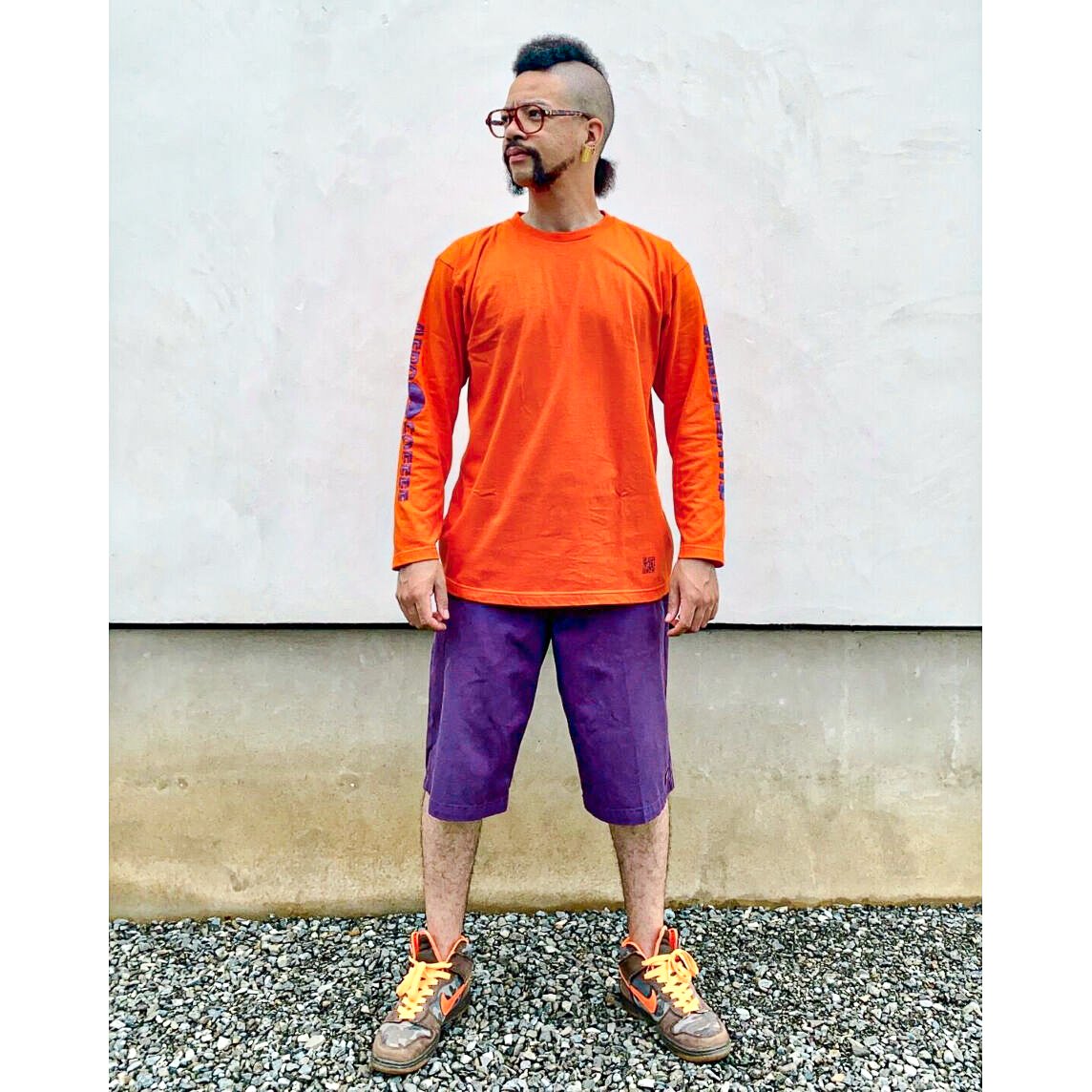 コットン製のロングスリーブプリントTシャツ。老若男女を選ばないイケイケロンTは普段使いはもちろんのこと様々なシーンで着ている人の気持ちを盛り上げます。別売りの半袖Tシャツとの組み合わせもオススメです。